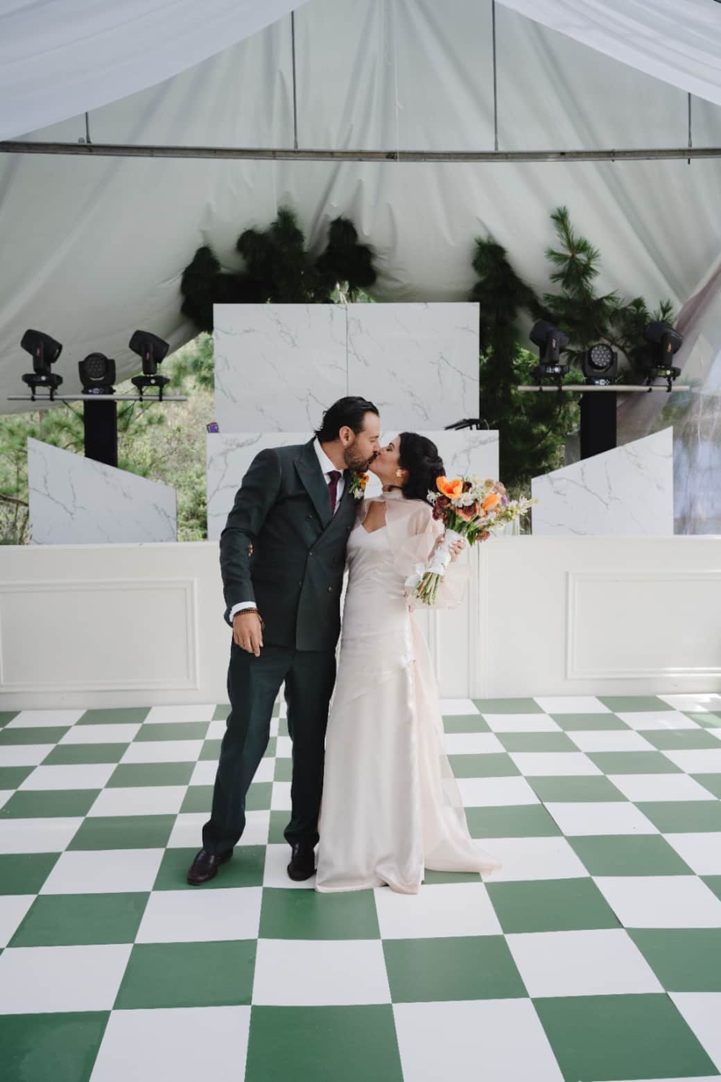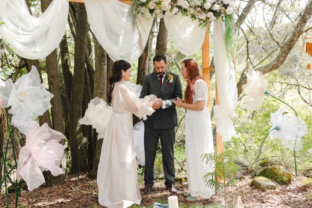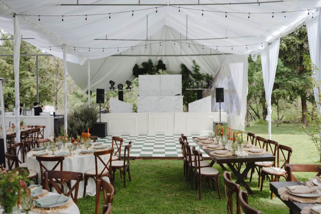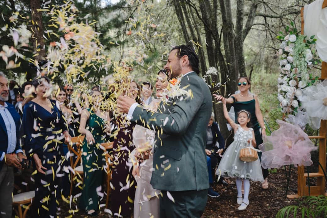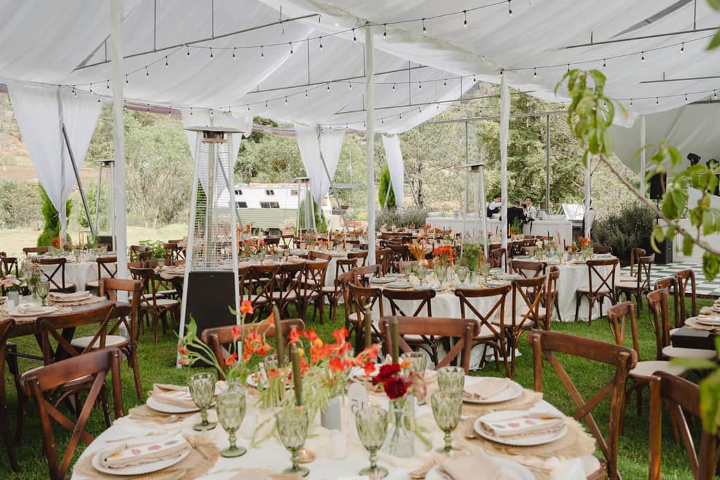 La ceremonia entre árboles, el cóctel al aire libre y, a la hora del banquete, el gran evento en un invernadero techado con un ambiente único.